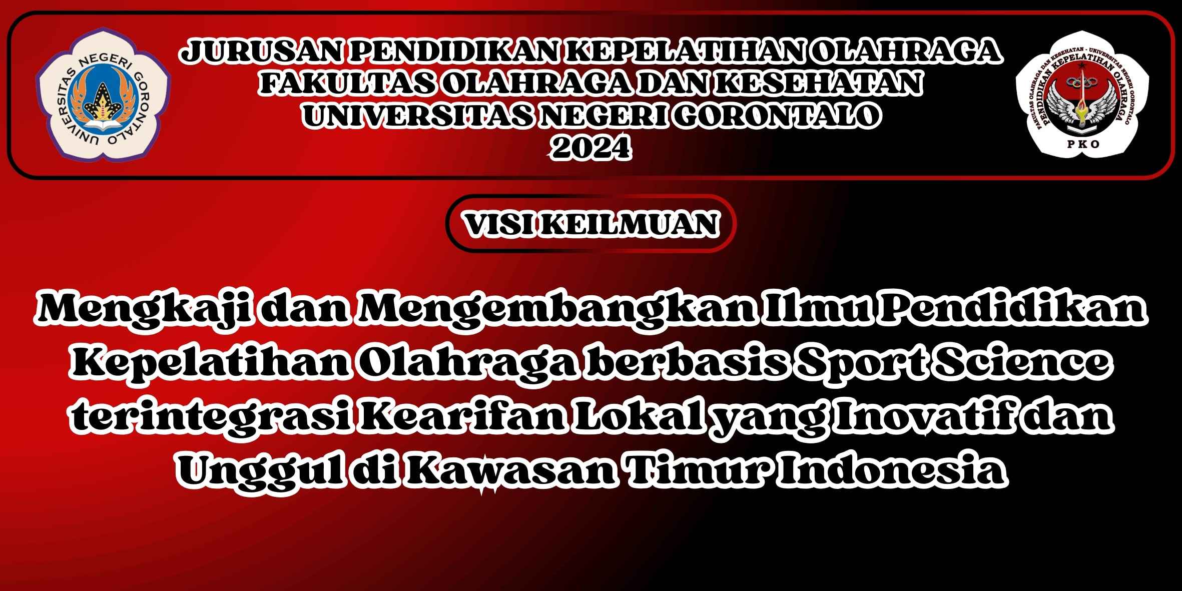 Mengkaji dan Mengembangkan Ilmu Pendidikan Kepelatihan Olahraga berbasis Sport Science terintegrasi Kearifan Lokal yang Inovatif dan Unggul di kawasan Timur Indonesia.