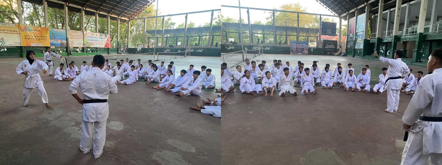 Suasana berbeda tampak di indor kampus UNG saat perkuliahan mata kuliah bela diri karate berlangsung. Deretan mahasiswa dengan seragam putih , memperhatikan dengan serius setiap gerakan yang diperagakan di tengah arena. Di bawah arahan langsung Kepala Jurusan, perkuliahan ini tidak hanya menjadi ajang belajar, tetapi juga wadah pembentukan karakter.