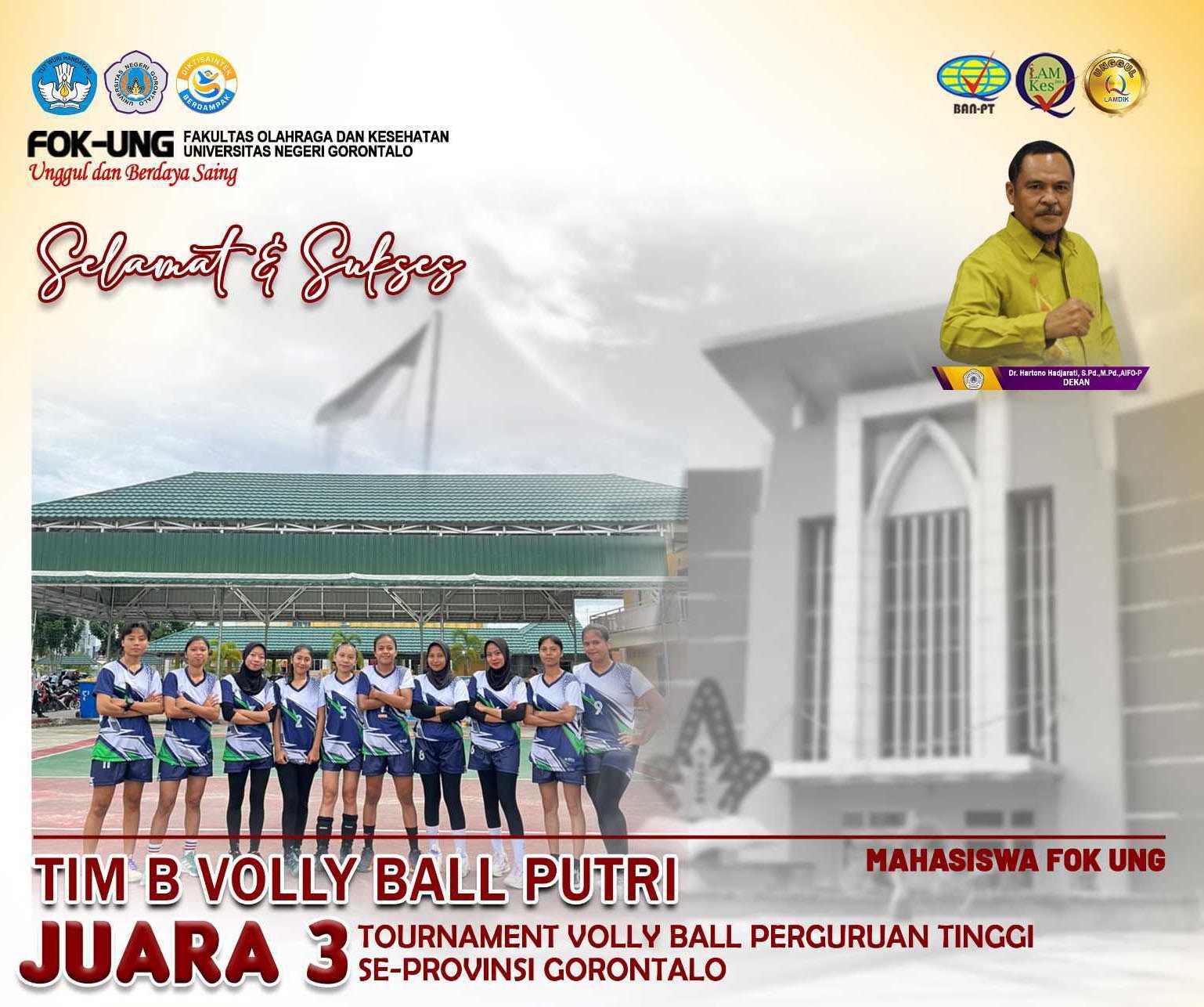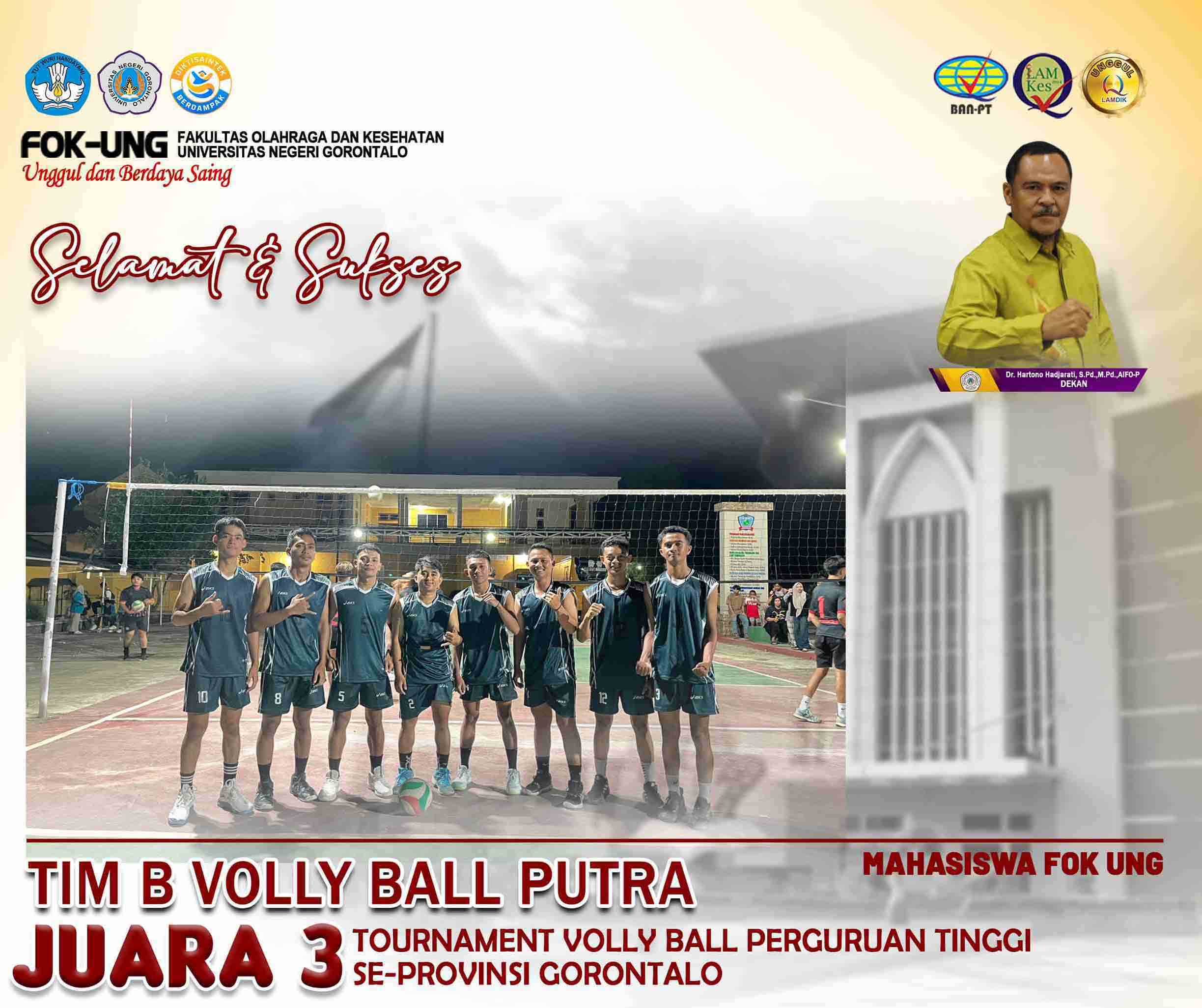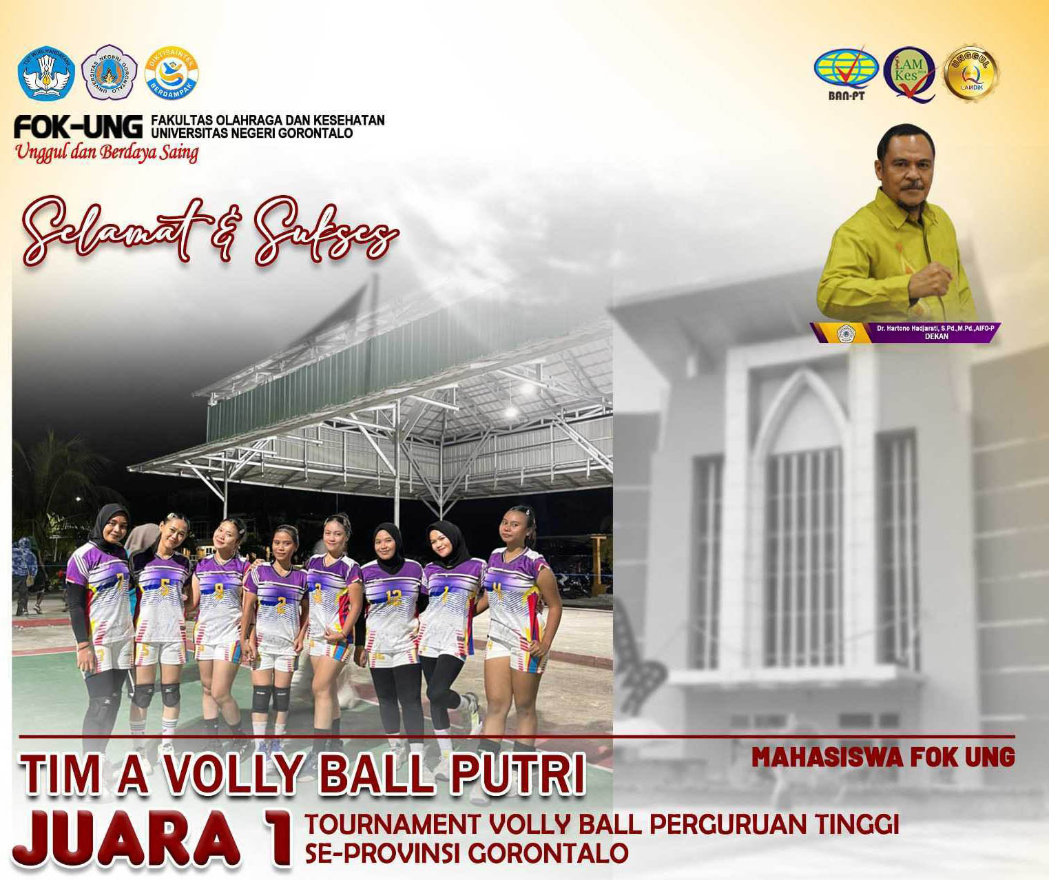 Fakultas Olahraga dan Kesehatan Universitas Negeri Gorontalo (FOK-UNG) kembali mencatatkan prestasi membanggakan dalam dunia olahraga. Tim voli putra dan putri dari prodi Pendidikan Kepelatihan Olahraga (PKO) berhasil meraih juara di Turnamen Voli Antar Perguruan Tinggi Se-Provinsi Gorontalo yang baru saja diselenggarakan.